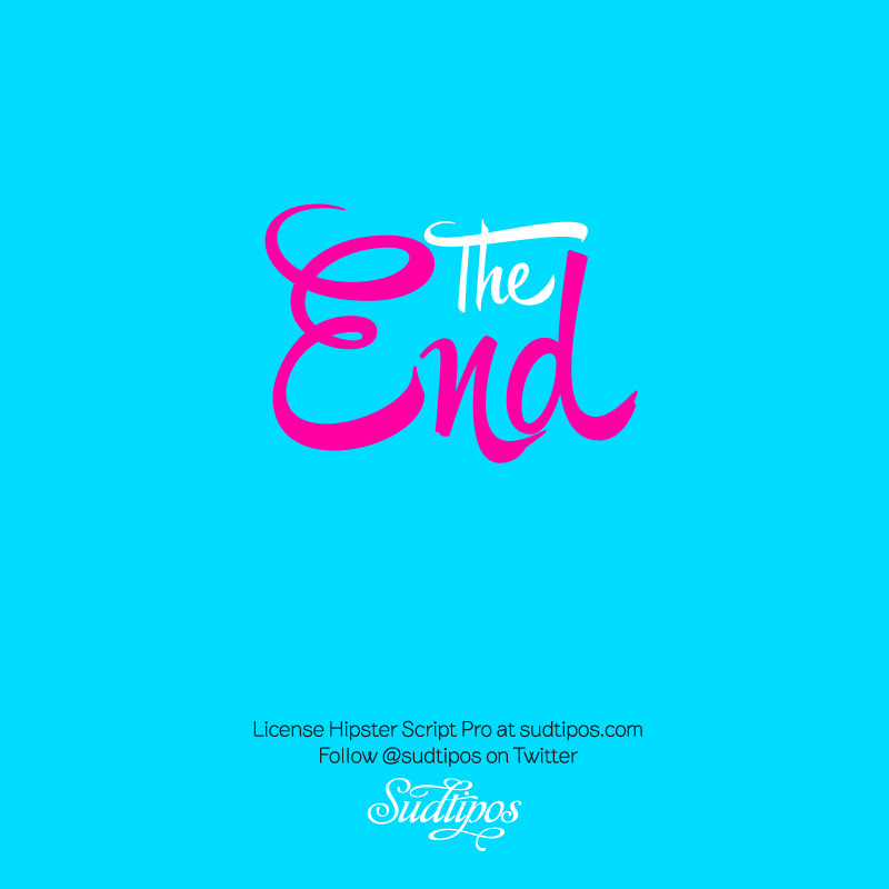 Hipster Script is another of my habitual attempts at trying to reduce the divide between manual and digital. In this case, I try to articulate brush lettering, try to get the computer to emulate continuous painting. The process wasnt that different from my work with Feel Scripts shot at computerized commercial lettering, though here we have a more casual contrast, rather than the high seriousness of the Copperplate script. Swashes, alternates, ligatures — too many of them, all trying to make the interplay between the tool's two extreme widths remain faithful to hand movement subtleties. I also toyed with ligatures containing apostrophes, something I've never seen before. With this typeface I think I've become more balanced in uniting the spontaneity of post-war ad lettering with the current trends in illustration and design.