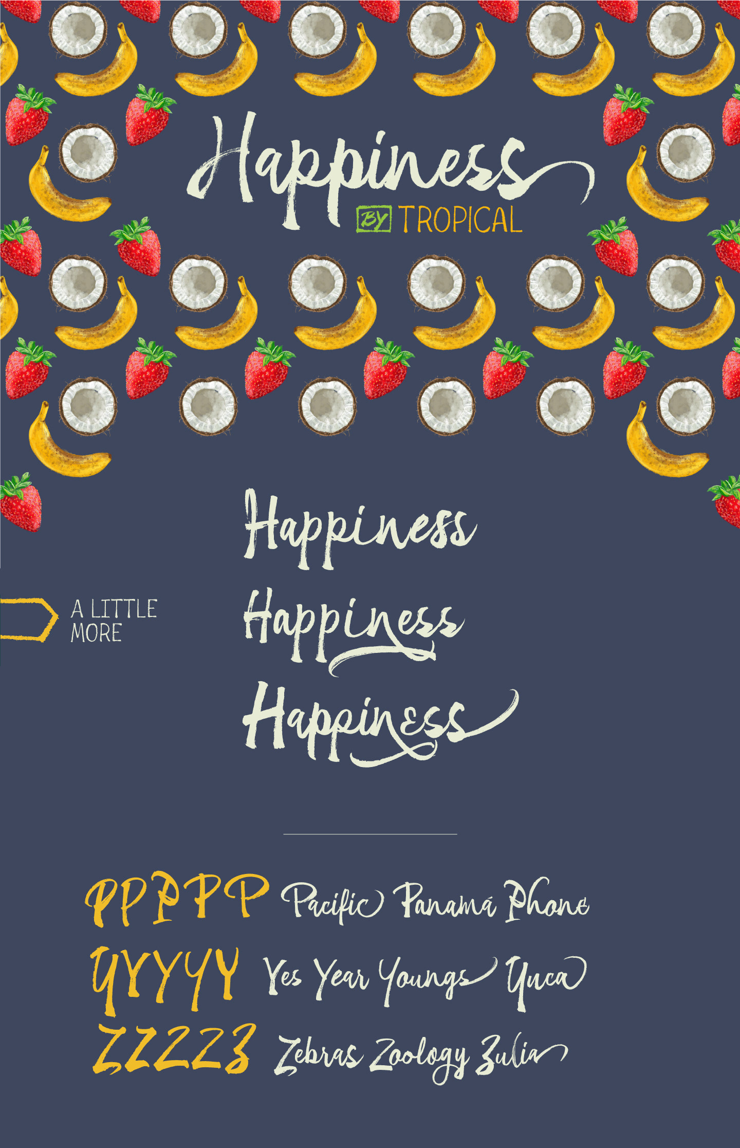 Like a fruit cocktail, each ingredient is tasty on its own, but when combined are even more delicious. Sprinkle the included catchwords, shapes and bursts into your layout for the ultimate Caribbean vibe. Each face includes alternates and support for multiple Latin languages.
